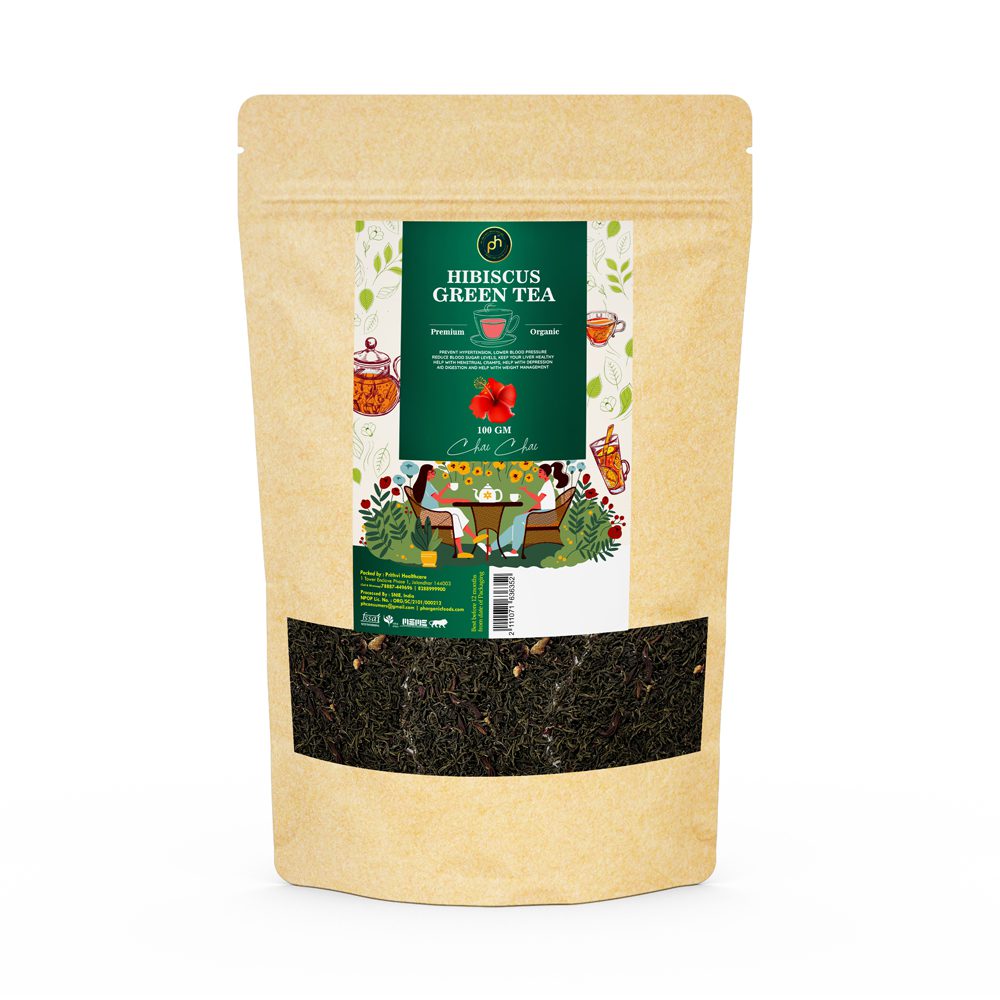 Hibiscus Green Tea is a blend of green tea leaves and dried hibiscus petals. It has a vibrant red color and a tangy, slightly sweet flavor with refreshing floral notes.